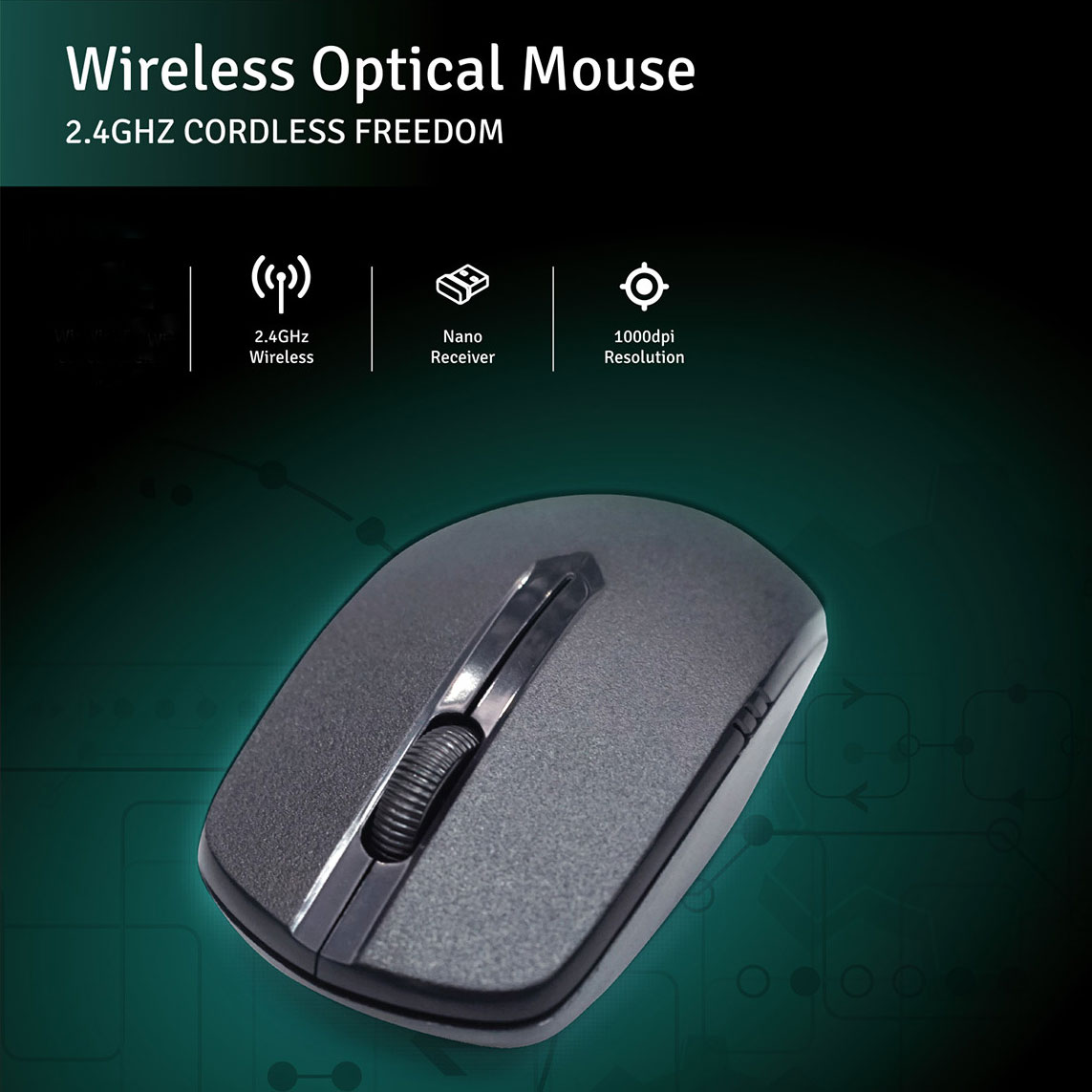 MOUSE wireless, 2.4GHz, optic, 1000 dpi, 3 butoane 1 scroll, negru
